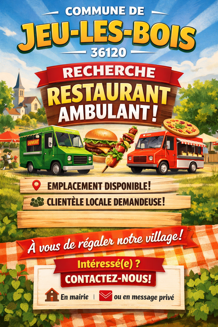 Si vous êtes intéressés, merci de vous adresser à la mairie de Jeu les Bois,